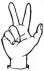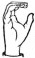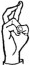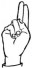 На ћирилици написано РУМЕНА ВАСИЉЕВ састоји се из 13 слова [?]. Исписано ћириличном једноручном азбуком за глувонеме: